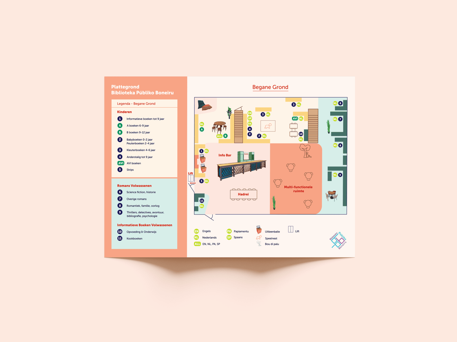 I was asked by the public library of Bonaire, Biblioteka Públiko Boneiru, to design a map and a ‘Guestbook’ poster.