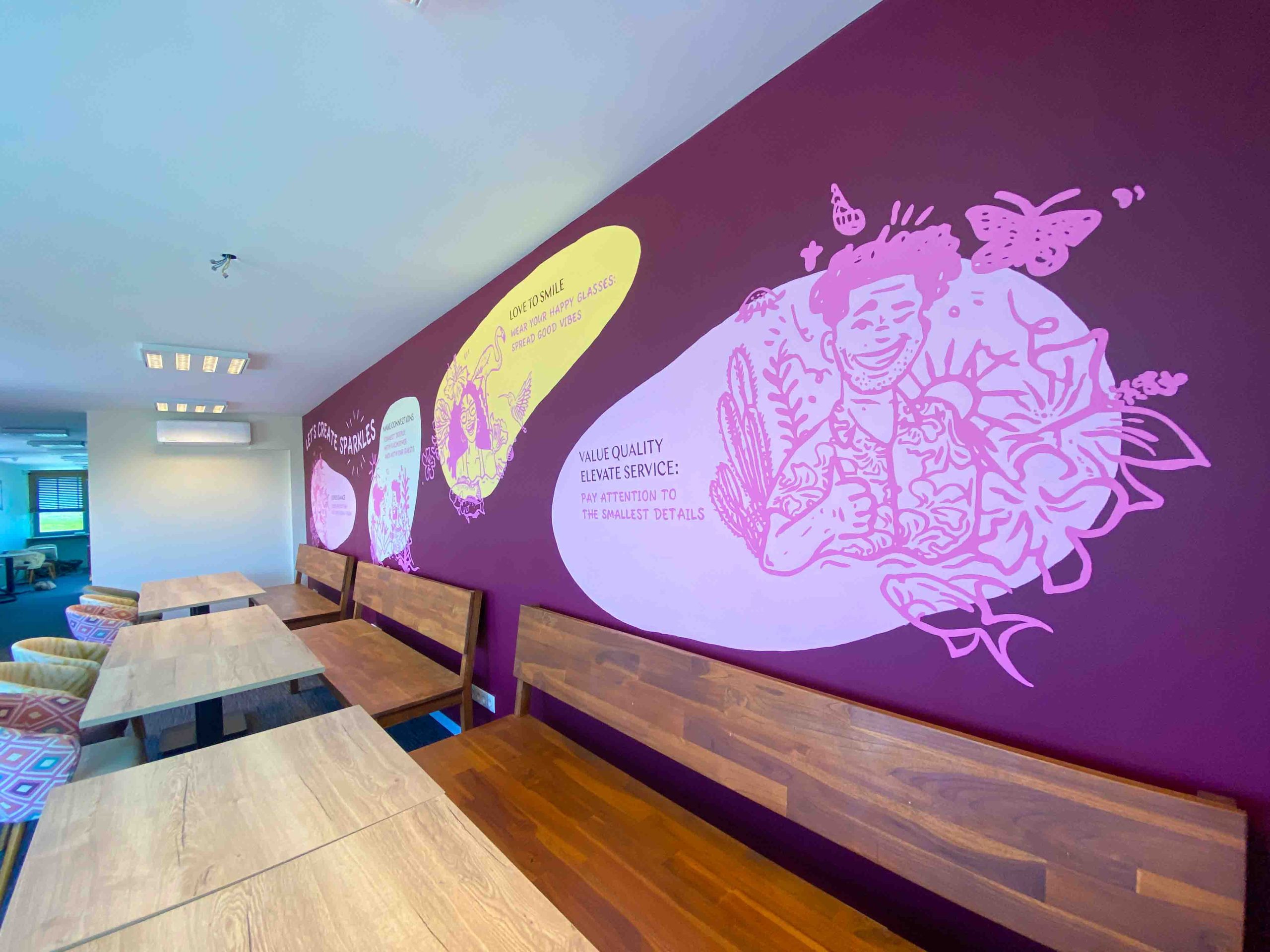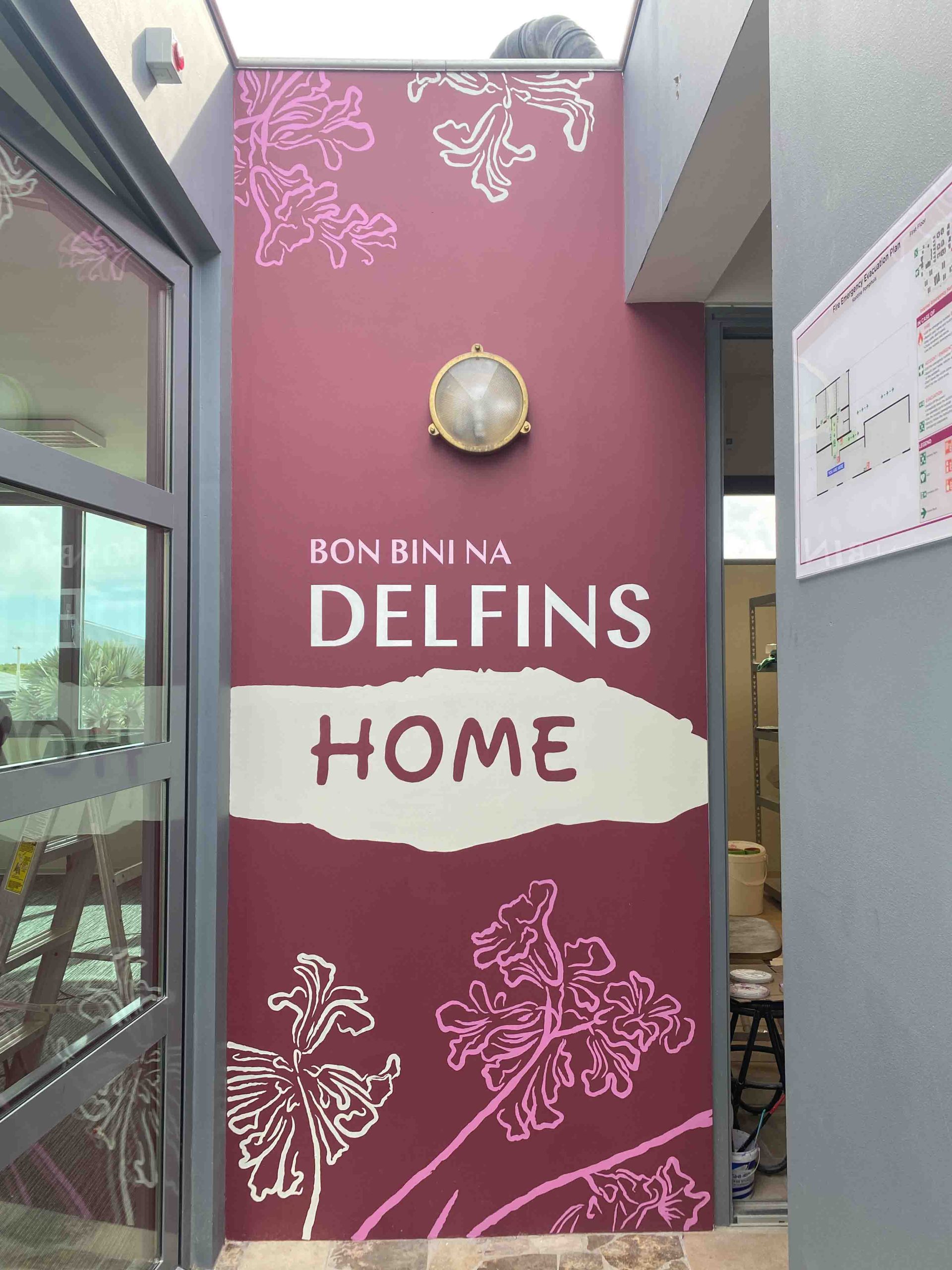 Various murals I painted for Delfins Beach Resort Bonaire: the staff area, the front office and the entrance. The murals consist of lettering, logos and illustrations.